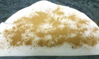- Colocar los rollos boca arriba y aplastarles para integrar la canela en las capas de hojaldre