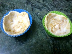 - Colocar la pasta en los moldes estirandola con los dedos de forma que el molde quede cubierto