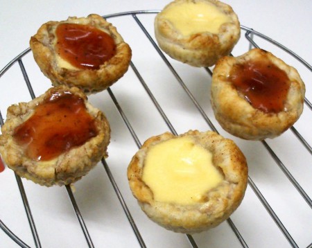 - Meter al horno de nuevo hasta que la crema esté cuajada. Sacar del horno y echar encima mermelada o caramelo al gusto.